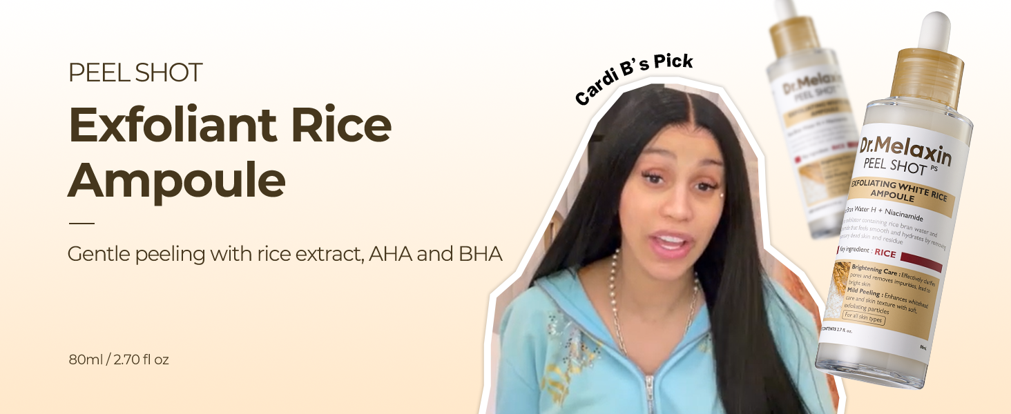 Dr. Melaxin Peel Shot is a gentle rice-based exfoliating treatment that helps remove dead skin cells, smooth texture, and improve skin clarity using White Rice and Black Rice extracts.